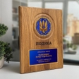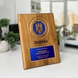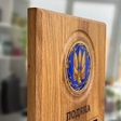 Ця іменна подяка з гербом України — символ честі, відваги та вдячності. Виготовлена на масивній дерев'яній основі, прикрашена об'ємною емблемою і табличкою для індивідуального гравіювання. Ідеальний вибір для відзначення військових, медиків, волонтерів, держслужбовців та інших героїв, які щодня працюють задля Перемоги України.